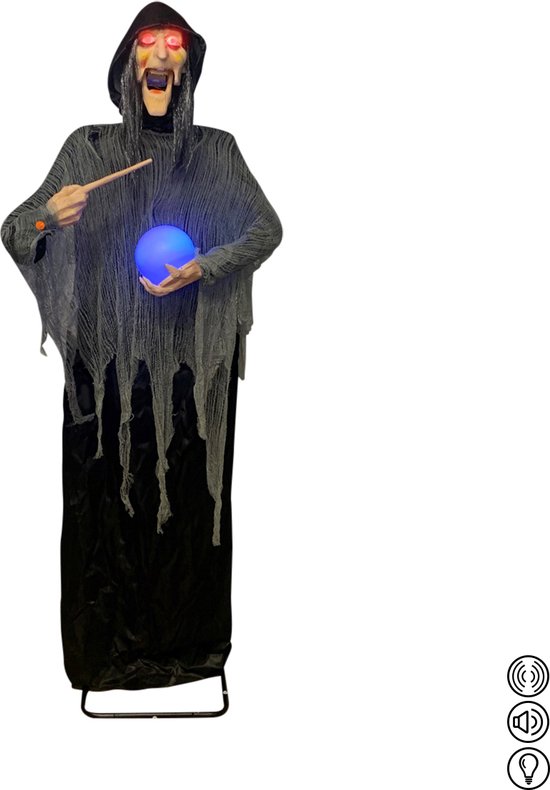 Cette sorcière effrayante avec boule magique est la décoration d'Halloween parfaite pour effrayer vos invités ! Installez facilement la sorcière et transformez votre emplacement en une véritable maison hantée en un rien de temps. Le capteur sonore garantit qu'il fera du bruit, donnera de la lumière et bougera, super effrayant, n'est-ce pas ?!