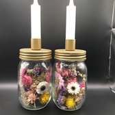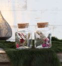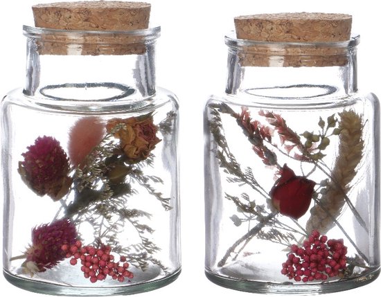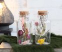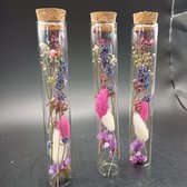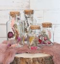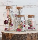 Flacon de médicament en Verres avec 2 fleurs séchées diverses Ø7cm (12 pcs.)