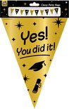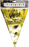 Bruant or/noir pour quelqu'un qui est passé avec le texte : ' Yes! Tu l'as fait!'. Cette guirlande se compose de 15 drapeaux et mesure 10 mètres de long.