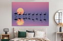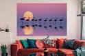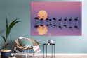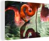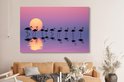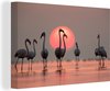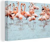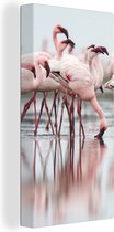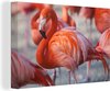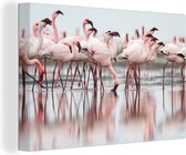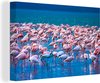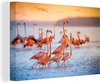 Flamants roses marchant dans l'eau d'été chauffée 180x120 cm - Tirage photo sur toile (Décoration murale salon / chambre) XXL / Groot format!