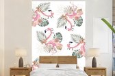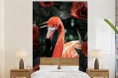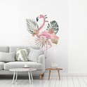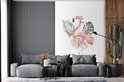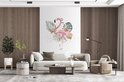 Flamingo et fleurs sur fond blanc 170x260 cm