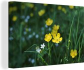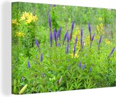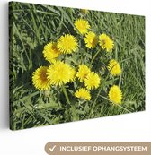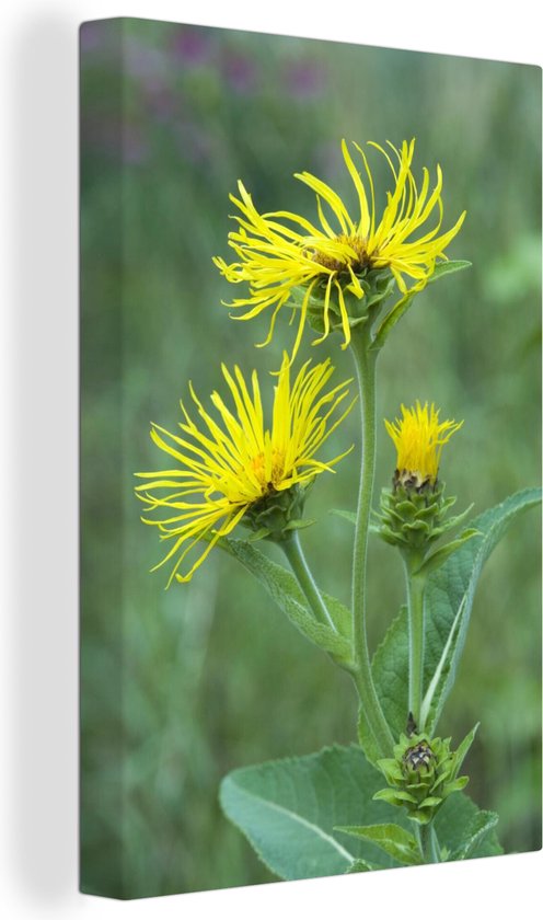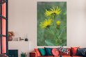 Fleur d'Alant jaune entre la haute herbe verte Toile 120x180 cm - Tirage photo sur toile (Décoration murale salon / chambre) XXL / Groot format!