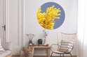 Fleurs de mimosa jaune vif avec ciel bleu Sticker mural cercle papier peint ⌀ 120 cm / cercle papier peint / cercle mural / cercle vivant - auto-adhésif et découpe ronde