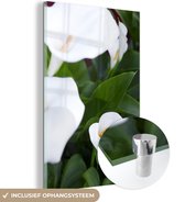 Peinture sur verre MuchoWow® 60x90 cm - Peinture acrylique sur verre - Calla Witte au milieu des feuilles vertes - Photo sur verre - Peintures