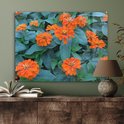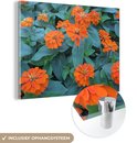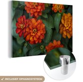 Fleurs de zinnia Oranje avec feuilles vertes Plexiglas 80x60 cm - Tirage photo sur Glas (décoration murale plexiglas)