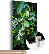 MuchoWow® Peinture sur verre 80x120 cm - Peinture sur verre acrylique - Fleur d'oranger parmi les feuilles vertes - Photo sur verre - Peintures