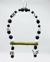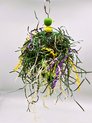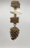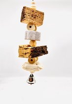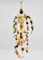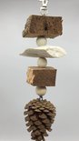 Fabriqué avec du fil d'acier inoxydable, des perles de bois, du liège, du sépia, une pomme de pin naturelle et un crochet de suspension facile.
