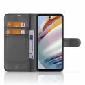 La couverture de livre B2C Telecom pour le Motorola Moto G60 tient confortablement dans la main et a un look luxueux et moderne. Avec deux porte-cartes et un compartiment à billets, cette bibliothèque est la combinaison idéale entre une coque de téléphone élégante et un portefeuille pratique.