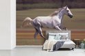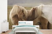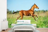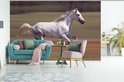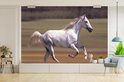 Fond d' écran - Papier peint photo - Enthousiaste cheval blanc courir dans le champ d'herbe - Largeur 450 cm x hauteur 300 cm