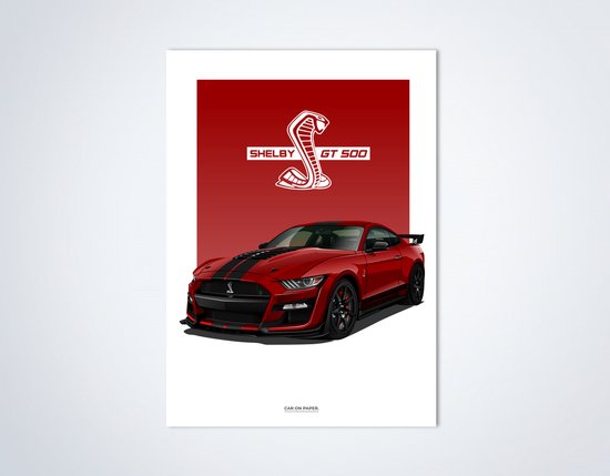 Ford Mustang GT500 Rouge sur Poster - 50 x 70cm - Poster Voiture Pépinière / Chambre / Bureau