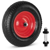 FORT Roue de brouette 400x100mm avec pneumatique 2Ply, jante plastique Rouge, longueur axe 130 mm et Ø 20mm