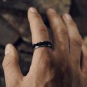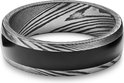 Fortis | Bague en acier Damas gris gunmetal et argent avec incrustation en onyx - 7 mm