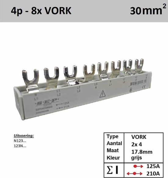 Fourche à peigne Sep M6 4 phases 8 broches 17,8 mm gris * Merk: Sep * Série : Kamrail * Version : Fourche * Code produit : F04008G06 * Type : 4 phases * Nombre de fourches : 8 * Taille de division : 17,8 mm * Couleur : Grijs