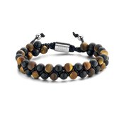 Frank 1967 Beads 7FB 0415 Bracelet en pierre naturelle - 20 cm / 8 mm - Blauw / Zwart
