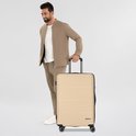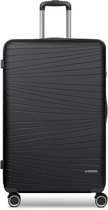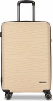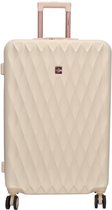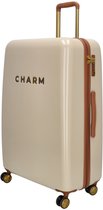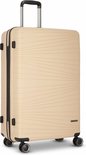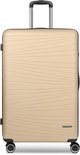Chariot Chique à 4 roues de Franky. Il possède à la fois une poignée de transport et une poignée verrouillable que vous pouvez ajuster à votre taille. Il y a plusieurs compartiments à l'intérieur pour ranger facilement vos bagages. Une sangle d'emballage en forme de croix garantit que tout reste en place. Grâce à la serrure à combinaison TSA, le contenu de vos bagages est bien protégé. Votre nouveau compagnon de voyage.