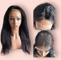 Frazimashop- Perruques brésiliennes Remy pour femmes – Perruques 100 % hair humains lisses et crépus de 45,7 cm – Perruque avec fermeture en dentelle 4 x 4