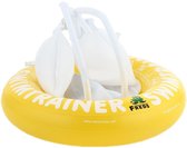 Nous avons commandé ce baskets de natation sur la recommandation d'amis, qui ont utilisé à la fois ce baskets de natation et un siège gonflable jaune pour leur enfant. Cet entraîneur de natation a été un vrai succès pour notre fils! Il se trouve en position de nage dans la piscine et s'est vite rendu compte qu'il pouvait lui donner des coups de pied pour nager quelque part lui-même. Il s'y trouve confortablement et profite de chaque instant. Les sangles sont bien réglables et le gonflage est facile. Vraiment recommandé!