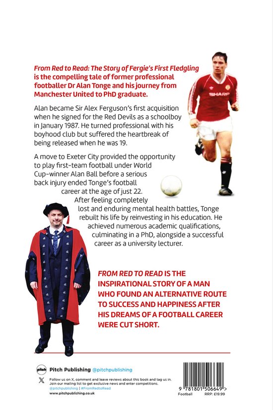 From Red to Read tells the story of Dr Alan Tonge, who holds the unique distinction of being Sir Alex Ferguson's first signing at Manchester United and played in the Football League for Exeter City. After a serious back injury ended his football career at age 22, Alan rebuilt his life through education and acquired a PhD.