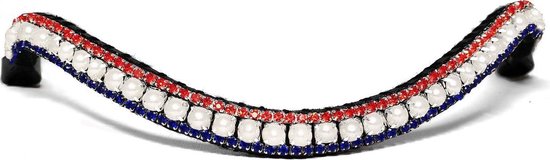 Browband Bling de la marque Bling Your Horse. Le bijou est facile à attacher et à remplacer sur la bride existante. Un frontal en cuir couvre différentes couleurs de cristaux et / ou de perles, fait avec plus de couches de fil extra épais. Un frontal bling qui complète votre tenue de dressage ou de saut. Laissez une impression éblouissante et inoubliable où que vous alliez. Si vous ne pouvez pas les enchanter avec excellence, aveugle-les avec Bling!
