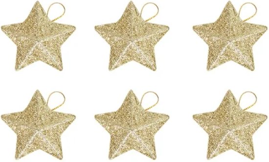 Faites briller votre sapin de Noël avec des Étoiles de Noël Glitter (6 pièces, 6x5 cm, Goud)