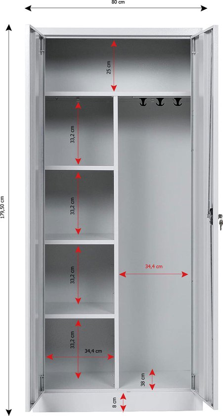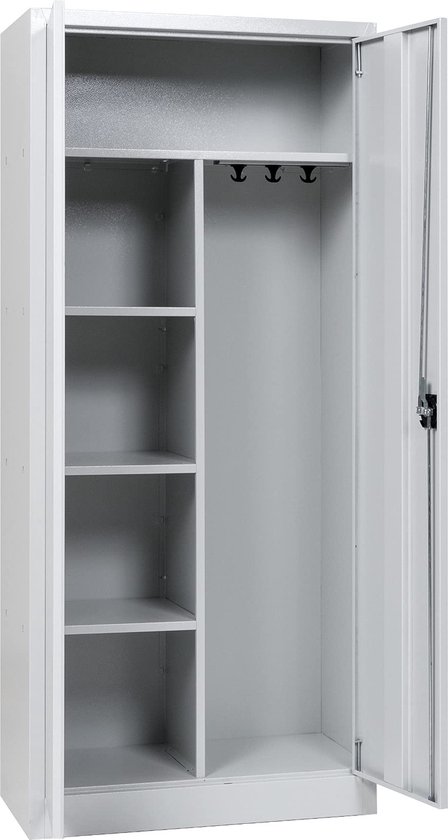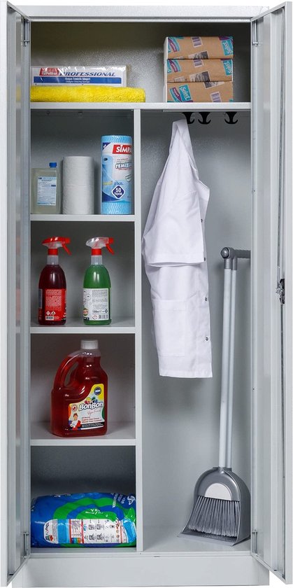 - Rangement des fournitures de nettoyage : gardez l'équipement essentiel et les fournitures de nettoyage organisés et en sécurité avec cette armoire de nettoyage spacieuse, durable, grise et en acier thermolaqué. Toutes vos affaires et outils dans un seul endroit verrouillable !