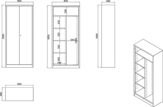 Dimensions : Grand et spacieux placard de 80 cm de largeur, 180 cm de hauteur et 38 cm de profondeur.