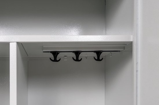 - COMPARTIMENTS FONCTIONNELS : 4 compartiments fixes pour produits d'entretien et détergents, une tringle à vêtements pratique et un compartiment haut pouvant ranger balais, vadrouilles, aspirateurs et autres ustensiles de nettoyage.