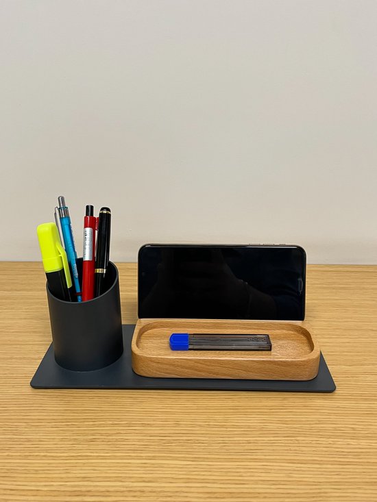 Furni24 Organisateur de bureau porte-stylo, support de téléphone (10x10x25 cm, anthracite)