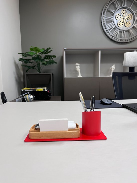 Furni24 Organisateur de bureau / décor rouge/chêne saphir