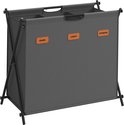 FurnStar - Panier à linge - collecteur de linge - 135 litres - boîte à linge - 3 compartiments - cadre en X pliable - étiquettes individuelles - pour buanderie - chambre - salle de bain - 70 x 40 x 66 cm - gris