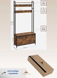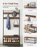 FurnStar - Portemanteau avec rangement pour chaussures - porte-manteau avec banc - 9 crochets et étagère supérieure - pour couloir - chambre à coucher - style industriel - marron rustique et noir