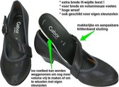GABOR article / modèle 36.149.36 Ohio pearl nightblue wechselfußbett sont des chaussures pour femmes en nubuck scintillant bleu foncé (bleu nuit) escarpins chaussures à sangle de la nouvelle collection automne / hiver 2023 de la marque de chaussures allemande Gabor. Ces escarpins à lanière confort sont faits d'un nubuck scintillant bleu foncé (sur fond noir) ou bleu nuit étincelant avec une large bande velcro sur le cou-de-pied et une broche en métal gris comme décoration. Les escarpins confortables Gabor reposent sur un talon carré facile d'une hauteur de talon de 4,5 cm et ont une forme en H très large, en particulier pour les pieds larges et lourds. De plus, ces pompes Gabor sont équipées d'une assise plantaire amovible optifit qui, si elle est retirée, libère de l'espace supplémentaire pour des pieds encore plus larges ou pour placer vos propres semelles. Grâce à la large sangle sur le cou-de-pied, ces escarpins restent en place facilement et grâce à l'insert élastique + la fermeture velcro, cette sangle est parfaitement ajustable à n'importe quel pied.