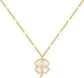 Gading® Collier femme avec pendentif - trèfle à quatre feuilles doré avec collier en acier zircone - 42+6 cm