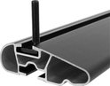 La largeur du support est de 8 cm, ce qui n'est pas un problème pour la plupart des systèmes de montage pour coffres de toit et accessoires, mais 8 cm peut être tout simplement trop large pour les coffres de toit plus anciens avec des supports étroits. La solution consiste à utiliser l'adaptateur en T qui peut être commandé comme accessoire.