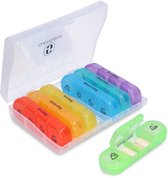 Piluliers pratiques et robustes. Très facile à utiliser grâce aux différentes couleurs et à la division en deux compartiments. Perfect pour mes médicaments.