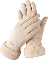 Gants tactiles hiver femme - Daim pelucheux - Gants chauds - Polaire - Mitaines femme adulte - 1 paire - Doublure épaisse - Couleur Café - Taille unique - Mitaines - Gants femme - Bord Bont