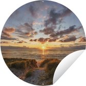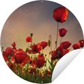 Garden Circle Ciel coloré au-dessus d'un champ Coquelicots au Danemark - 60x60 cm - Affiche Ronde de Jardin - Extérieur
