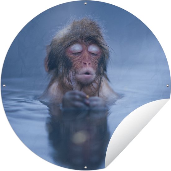 Garden Circle Snow Monkey Blue Water - 120x120 cm - Affiche de Jardin Ronde - Extérieur - XXL