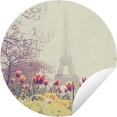 Garden Circle Tour Eiffel - Blauw - Paris - 90x90 cm - Affiche de Jardin Ronde - Extérieur