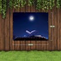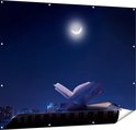 Gards Affiche de jardin Boek Saint Coran avec un croissant de lune - 150x120 cm - Toile de jardin - Décoration de jardin - Décoration murale extérieur - Tableau de jardin