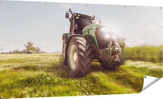 Gards Affiche de jardin Tracteur sur l'Herbe - Tracteur - 180x90 cm - Toile jardin - Décoration de jardin - Décoration murale extérieur - Tableau jardin