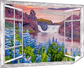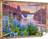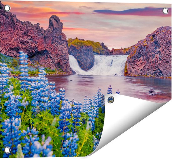 Gards Poster de jardin Cascade aux Fleurs de Lupine bleu - 50x40 cm - Toile de jardin - Décoration de jardin - Décoration murale extérieur - Tableau de jardin