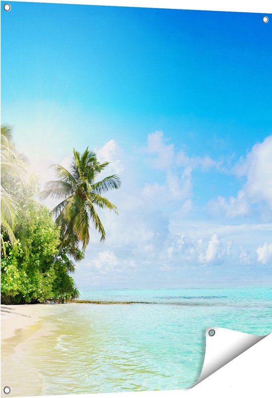 Gards Poster de jardin Plage tropicale au bord de la mer bleu clair - 80x100 cm - Toile de jardin - Décoration de jardin - Décoration murale extérieure - Tableau de jardin