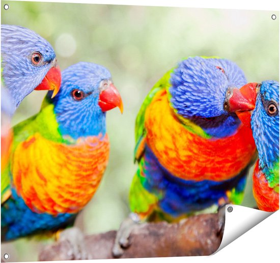 Gards Poster de jardin Quatre Vogels Lori arc-en-ciel sur une branche - 100x80 cm - Toile de jardin - Décoration de jardin - Décoration murale extérieure - Peinture de jardin