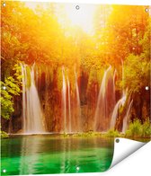Gars Affiche de jardin Chutes d'eau dans l' Water Blauw Verte - 80x80 cm - Toile jardin - Décoration de jardin - Décoration murale extérieur - Tableau jardin