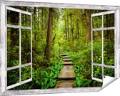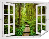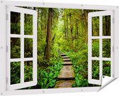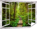 Gars Affiche de jardin Sentier transparent en forêt avec Plantes vertes - 120x80 cm - Toile jardin - Décoration de jardin - Décoration murale extérieur - Tableau jardin