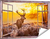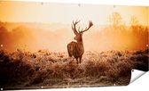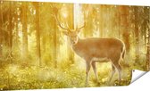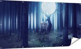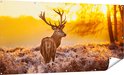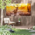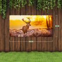 Gars Affiche jardin Cerf en forêt au lever du soleil - 180x90 cm - Toile jardin - Décoration de jardin - Décoration murale extérieur - Tableau jardin