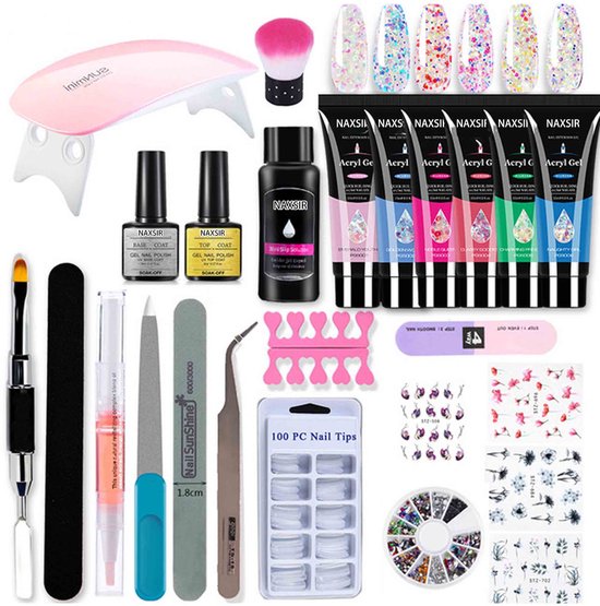 Gel d'extension 6 couleurs, kit d'outils pour ongles avec lampe UV, vernis à ongles gel DIY Nail Art Starter Nail Salon Gel Polish UV
