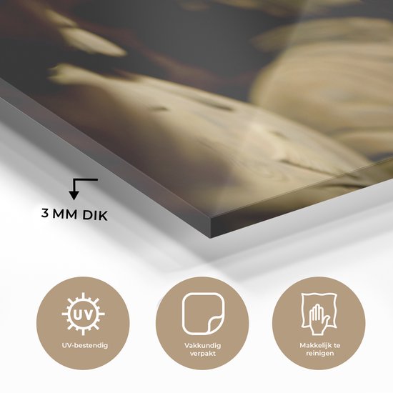 Ce produit est imprimé sur une plaque de verre. Grâce à cette texture lisse et brillante, la technique d'impression UV assure une belle impression brillante. Une photo sur verre est imprimée très nettement avec des couleurs très vives. Un système de suspension peut être commandé en option avec le produit pour fixer facilement l'impression au mur.