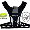 Gilet de course réfléchissant GearGlow avec support de téléphone étanche - Espace pour téléphone, clés, eau, cartes et plus - Comprend un porte-gobelet à l'arrière avec de la place pour un sac d'eau - Léger - Éclaire la course grâce à la réflexion
